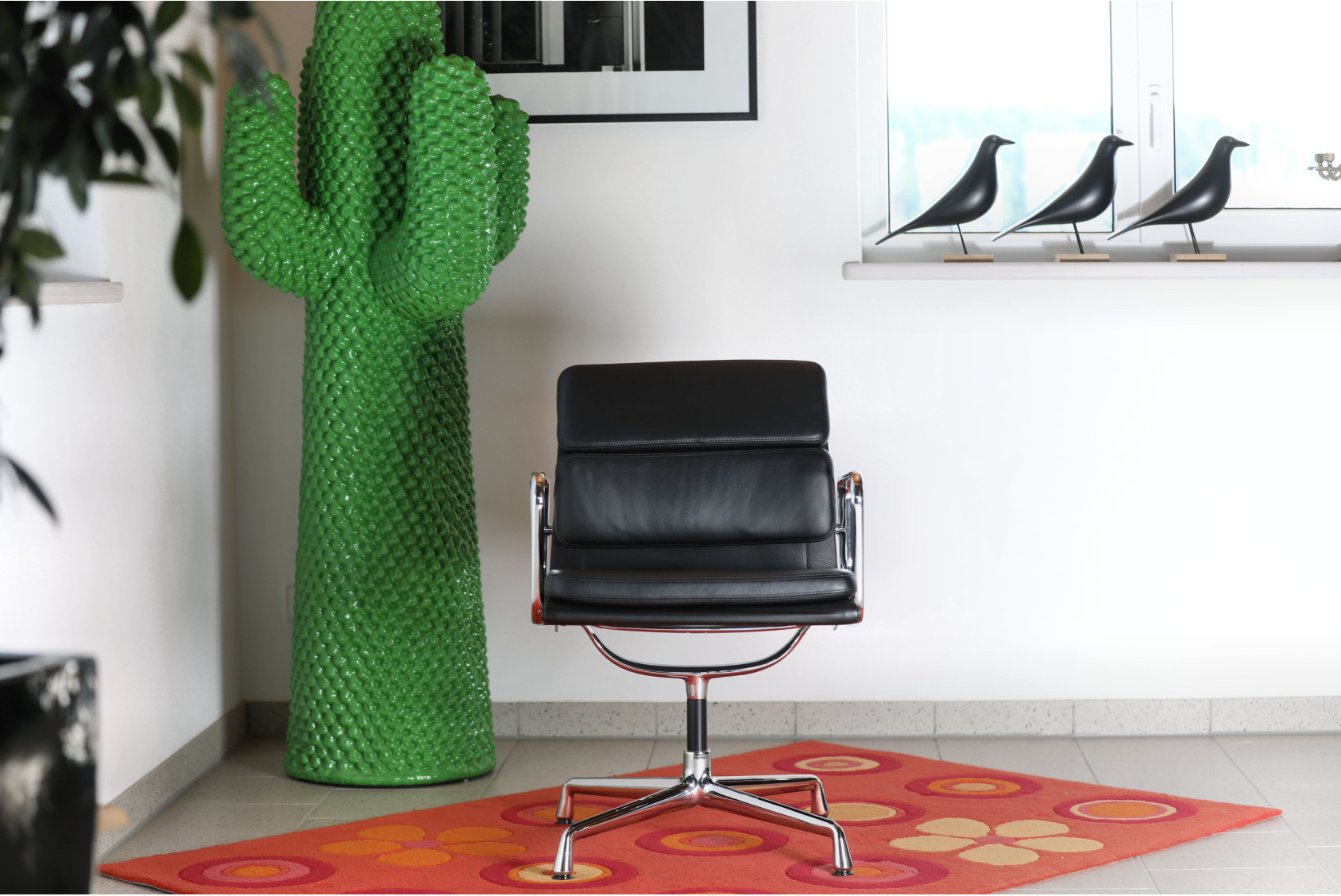 Als Originalprodukt von Vitra steht dieser Stuhl für höchste Qualität, Präzision und Designgeschichte. Die Soft Pad Chairs sind weltweit bekannt für ihre einzigartige Kombination aus Ästhetik und Komfort und gelten als Weiterentwicklung der klassischen Aluminium Chairs von Eames. Dieses neuwertige Ausstellungsstück ist daher nicht nur ein funktionales Möbel, sondern auch ein Stück moderner Designkultur – perfekt für Liebhaber zeitloser Originale.
